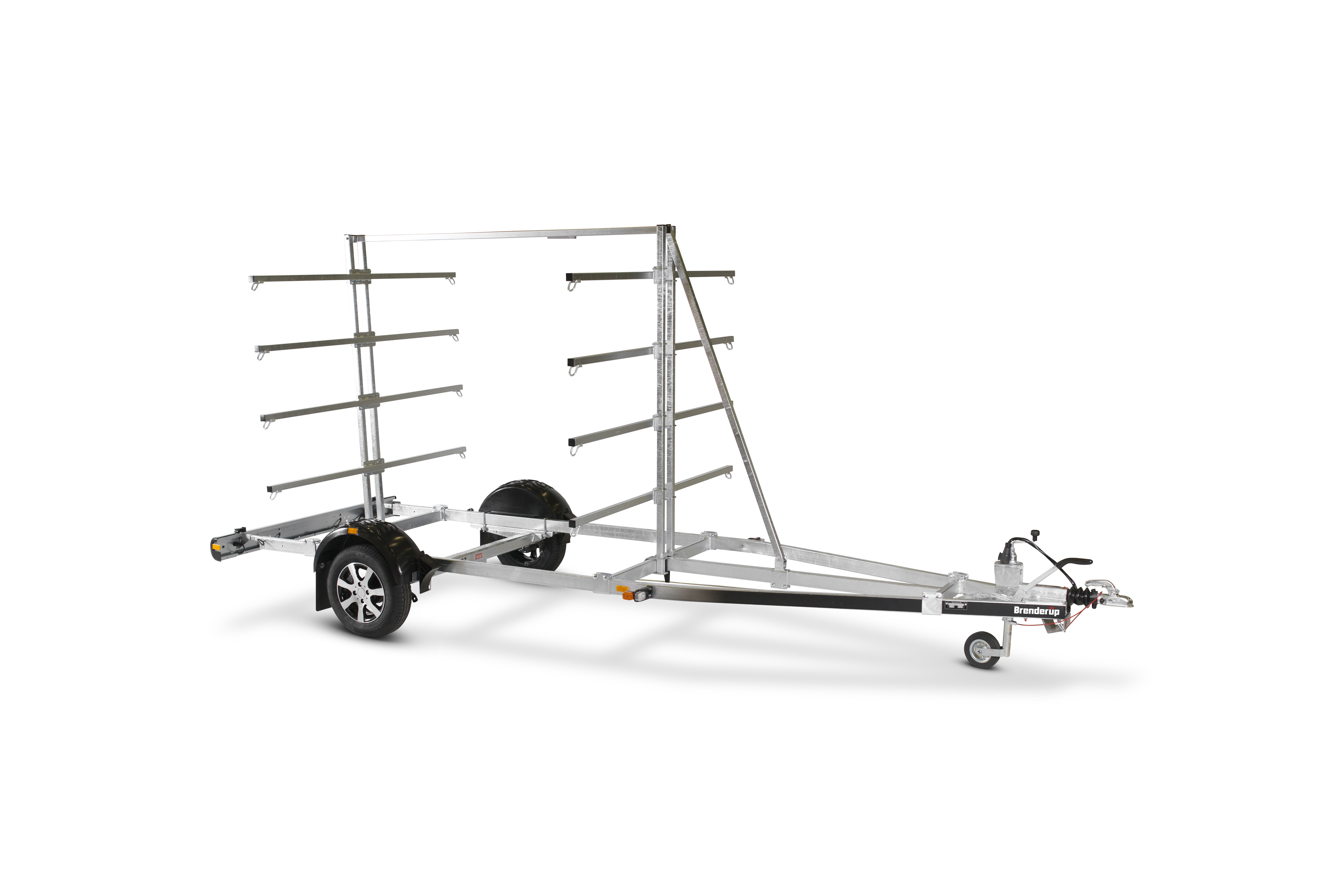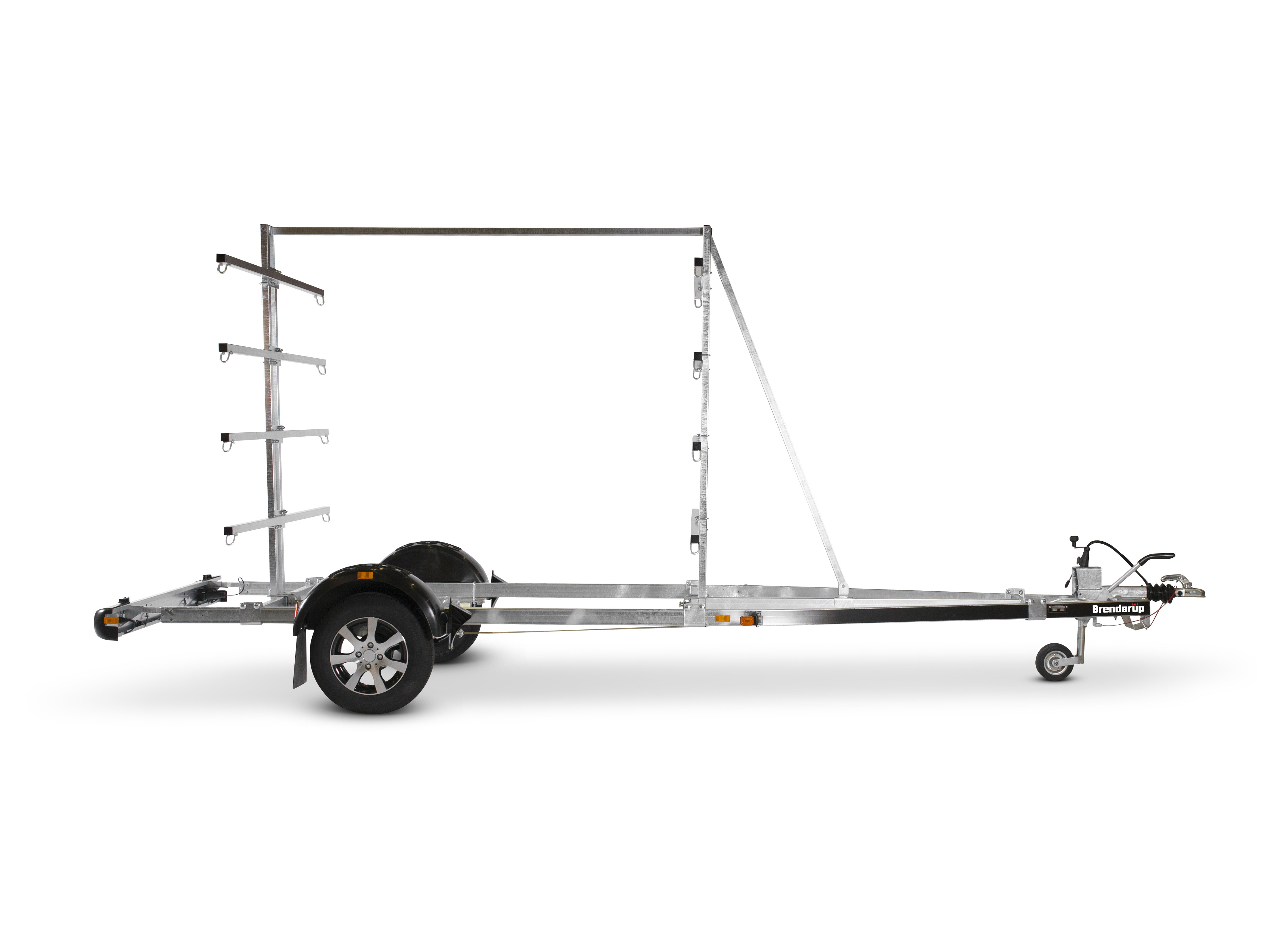 Med kano/kajaktraileren kan du let transportere op til 16 kajakker og 8 kanoer ad gangen. Stativet er justerbart afhængigt af størrelsen på dine kanoer/kajakker. Den V-formede trækstang giver en sikker og stabil transport af dine både. Varmgalvaniseret chassis og vandtætte lejer for længere levetid og maksimal beskyttelse mod rust. Kablerne ligger beskyttet i trailerens chassis. Lygtebommen sikrer let og hurtig søsætning af din båd, og lygtebommen kan opbevares i bilens bagagerum under sejlturen. Heldækkende skærme som trinbræt. Traileren på billedet kan være vist med ekstraudstyr.